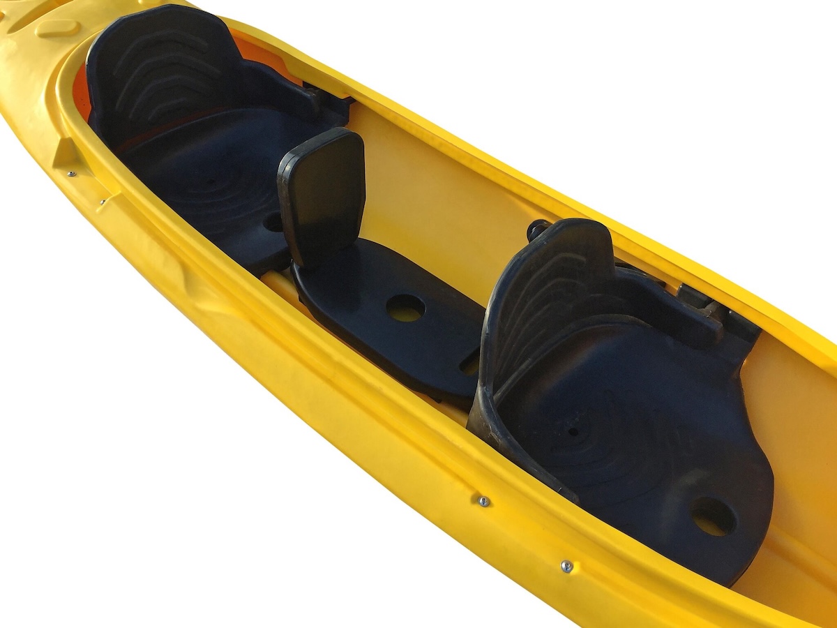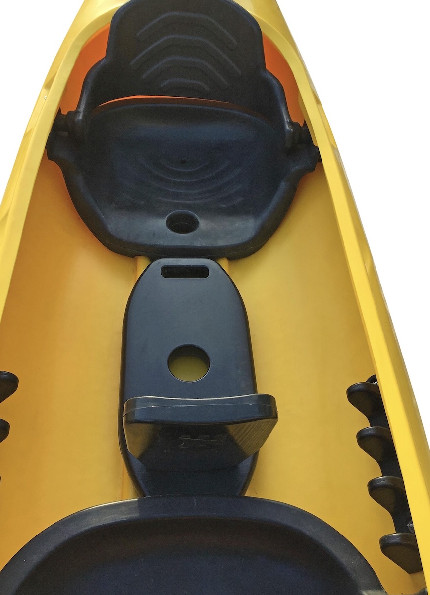 Kajakam ir ērti sēdekļi un kāju balsti, kas nodrošinās komfortu Jūsu braucieniem!