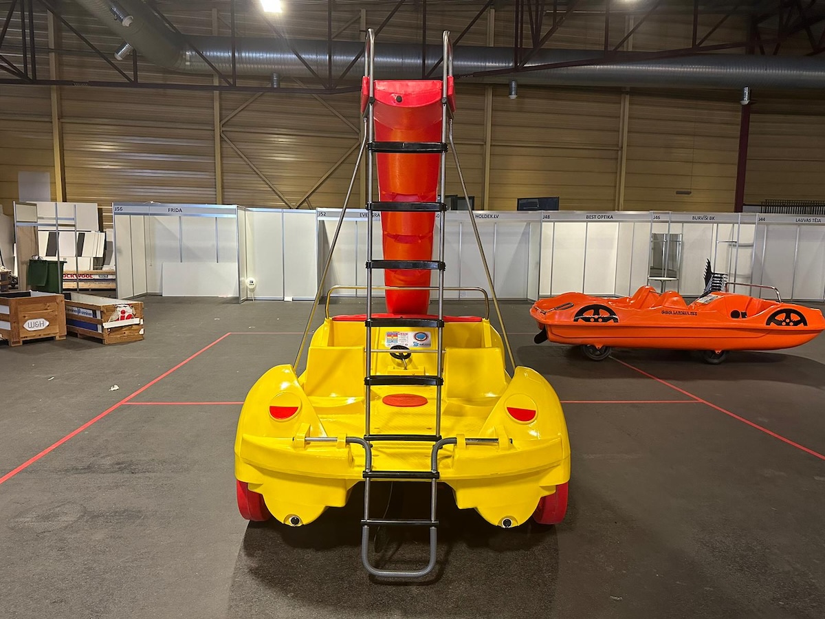 Standarta komplektācijā iekļautās preces: nerūsējošā tērauda kāpnes, kas centralizētas pakaļgalā, 4 brīvi kustīgi riteņi,