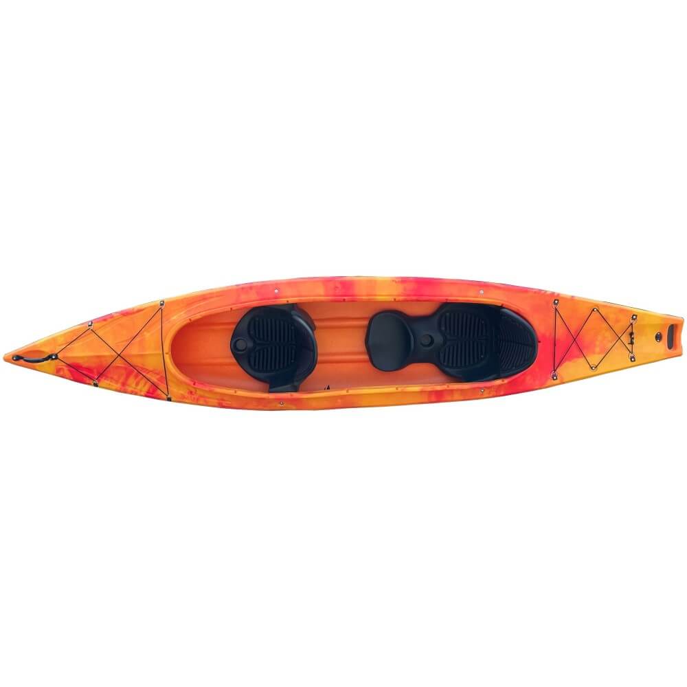 Izturīgs un universāls divvietīgais kajaks. Piemērots visiem ūdens veidiem. Aprīkots ar regulējamiem kāju balstiem un mīkstu sēdekļu polsterējumu.